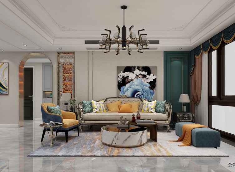 榮盛華府178平米美式輕奢風格裝修效果圖