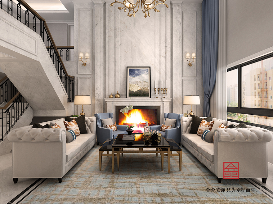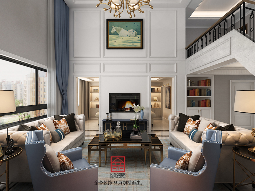 藍(lán)郡別墅裝修-美式風(fēng)格-客廳