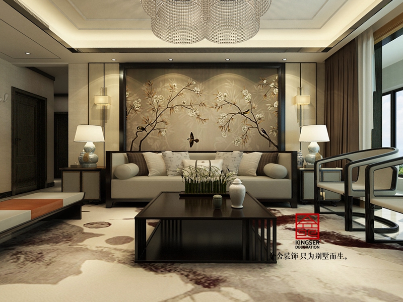 原河名墅裝修-新中式-客廳