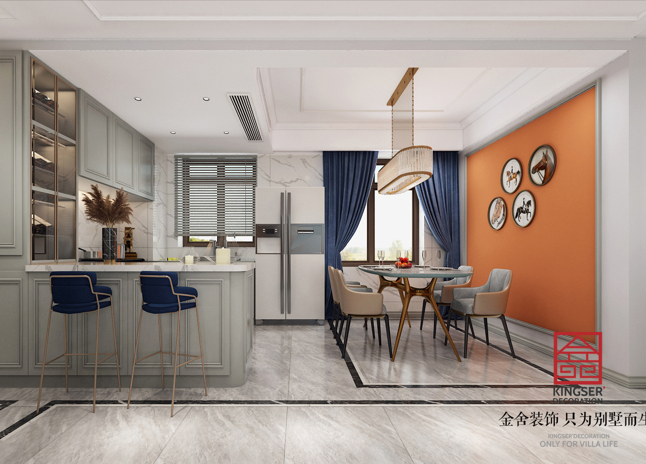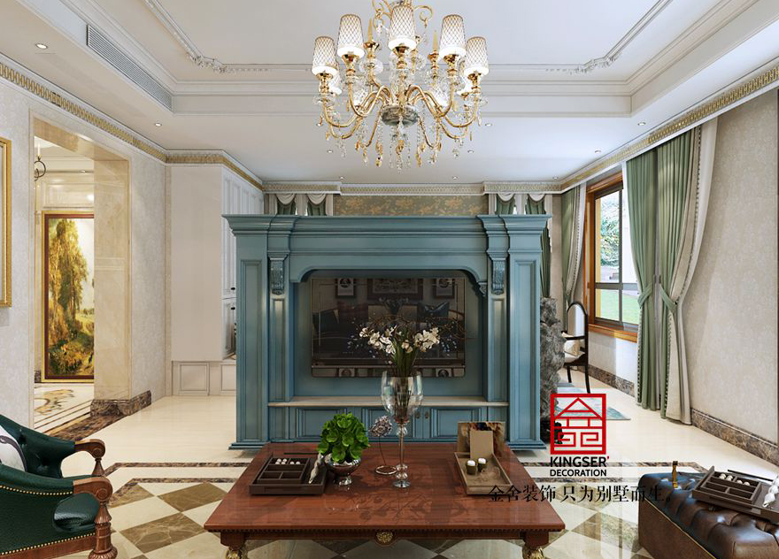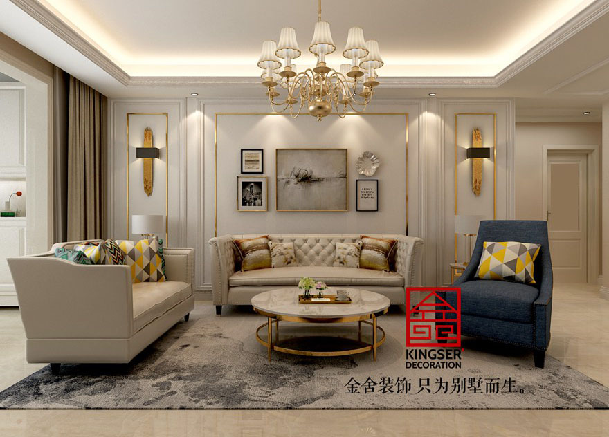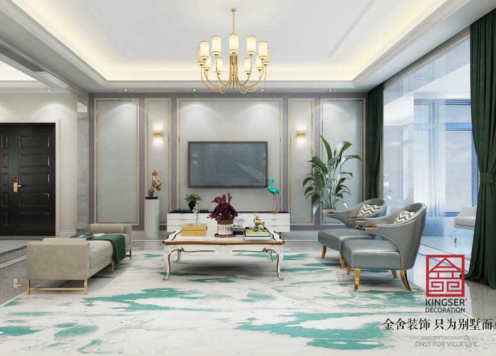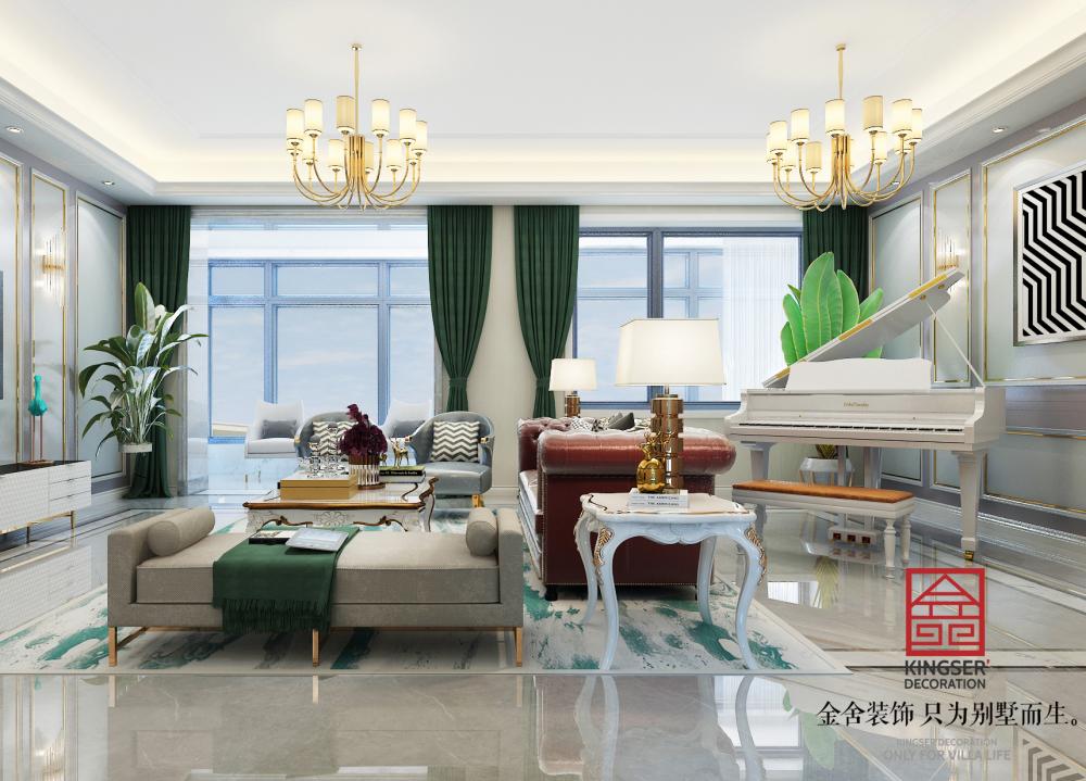 鑫界王府170平米裝修-美式輕奢-客廳