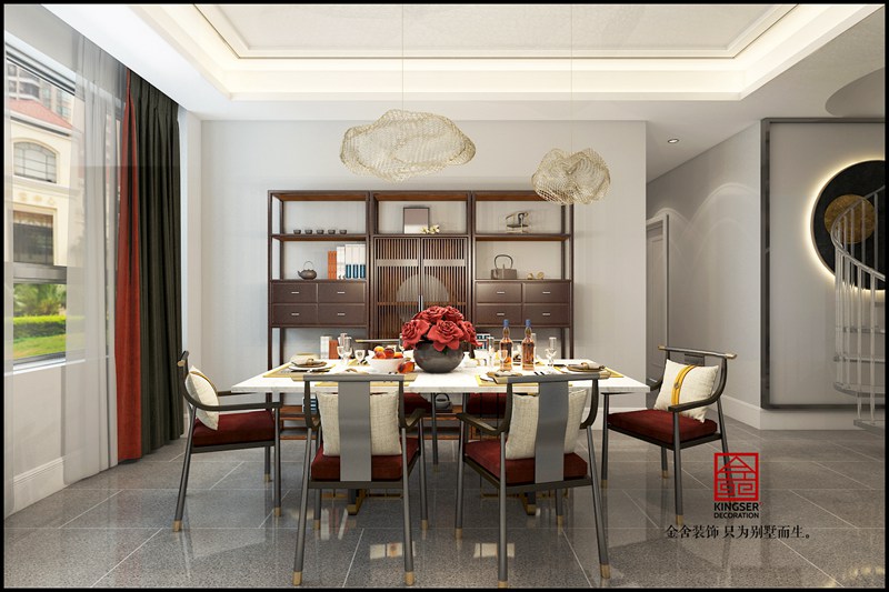 保利拉菲公館172平米裝修-新中式風格-餐廳