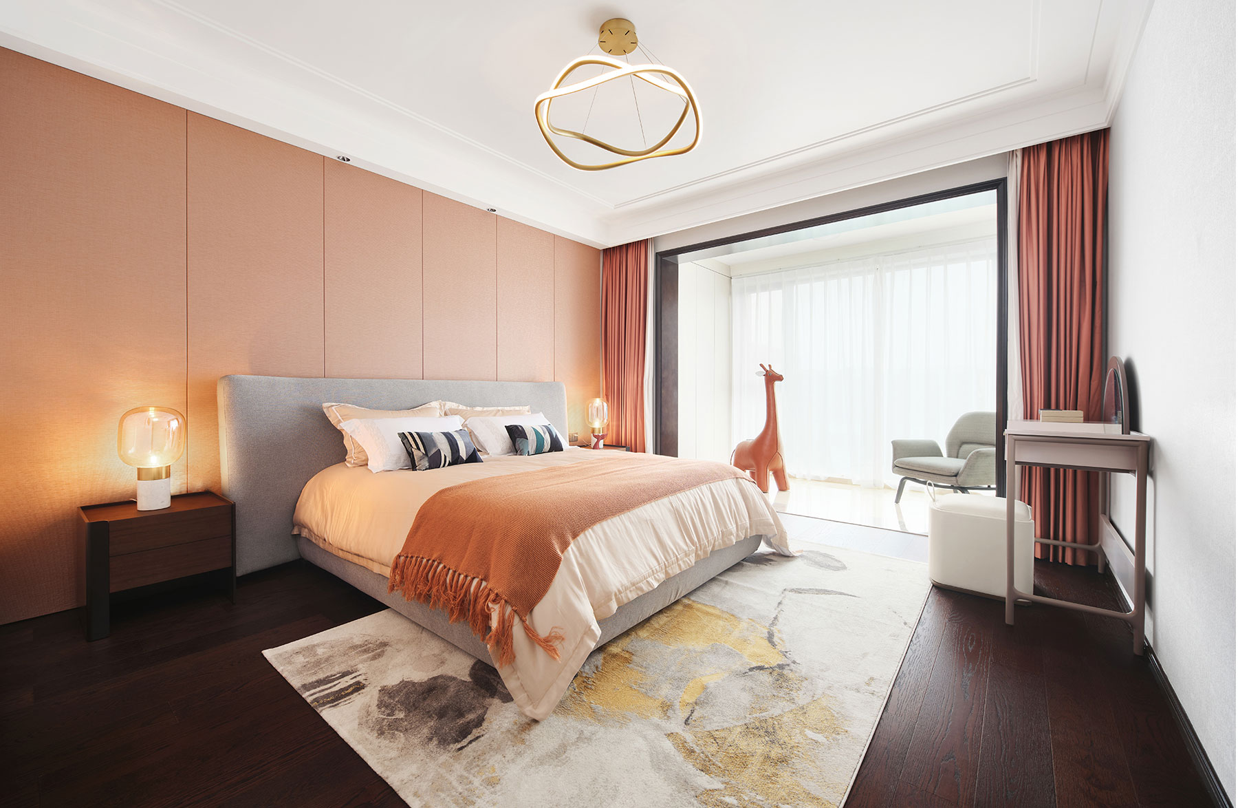 一個(gè)好的空間是能夠感動(dòng)人的,讓居住者受到觸動(dòng),如小澤征爾于二泉映月,達(dá)到情感的共鳴。以輕柔為主色調(diào),沉穩(wěn)的氣質(zhì)浸染到居住者的日常,深邃、放松,踏入這個(gè)家開始就已經(jīng)拭去壓力,只得安心與慵懶。