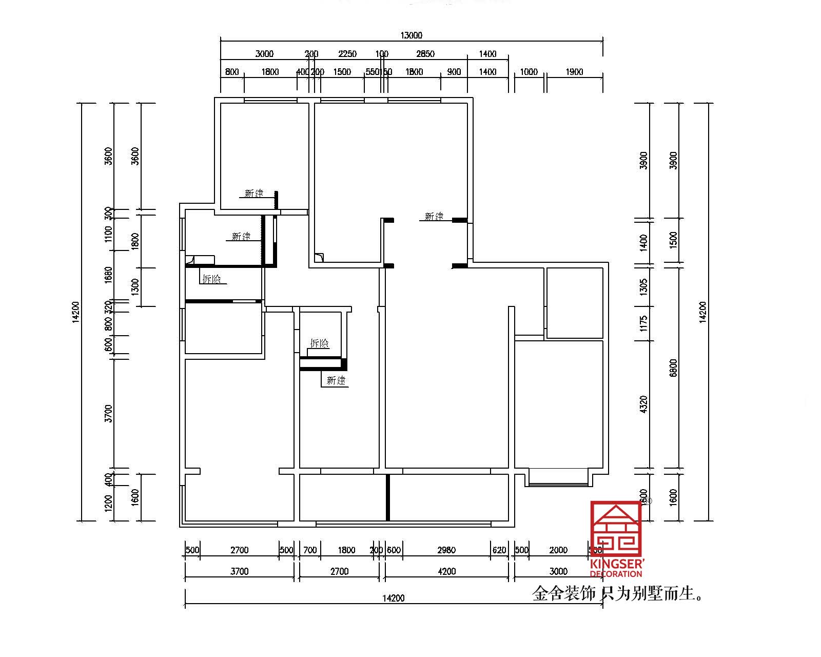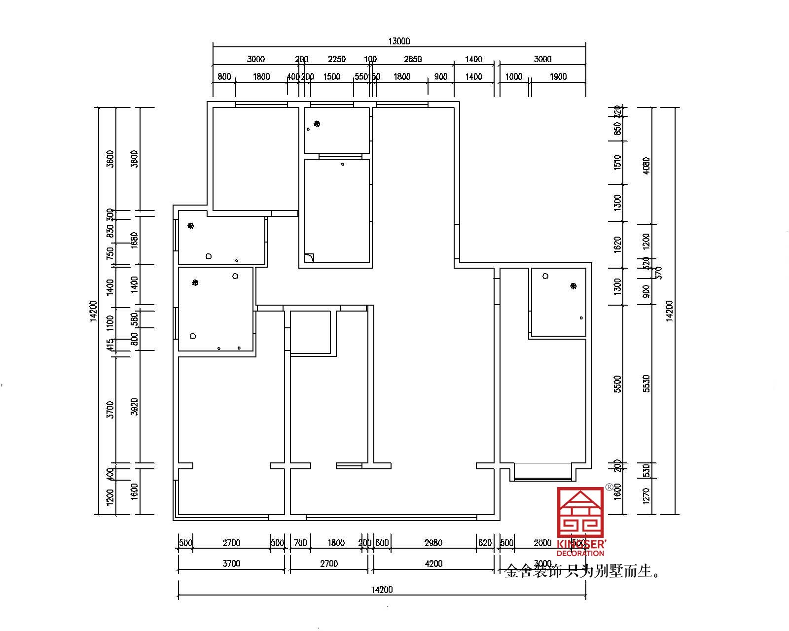 ③餐廳和廚房雖大,但是沒有大宅的風范,可以整個把廚房和餐廳都打開,做成圍合式的,這樣更有大宅的感覺。