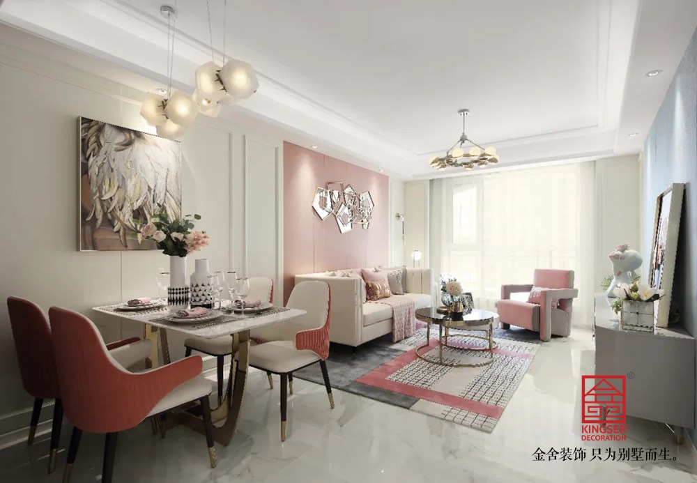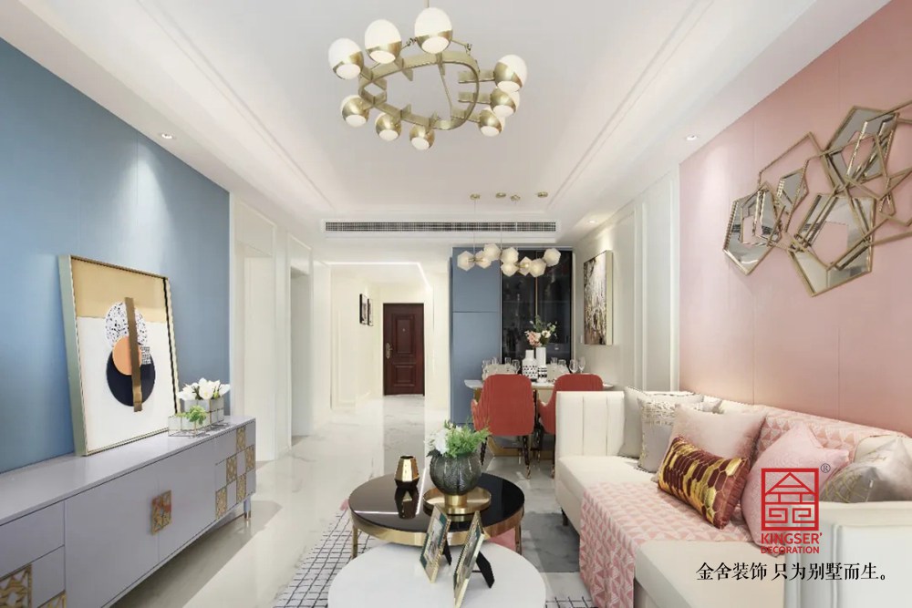 此案例為石家莊金舍裝飾-天海容天下110平米輕奢風格裝修實景。精致是一種生活中的和諧,而輕奢則是和諧生活的催化劑,讓我們真正處在充滿美好、自在、隨性的生活氛圍之中。此設計主要強調的是功能性設計,盡可能的做到形式更多地服務于功能。整體線條簡約流暢,色彩對比強烈,能給人帶來溫馨、愜意的感覺。