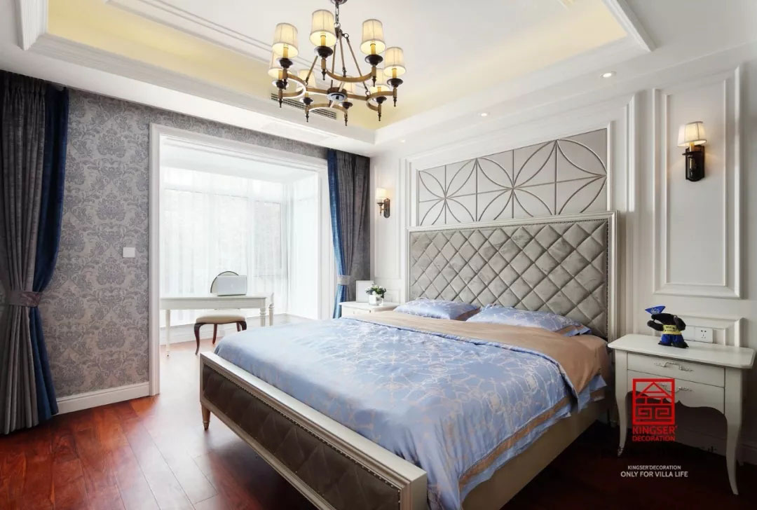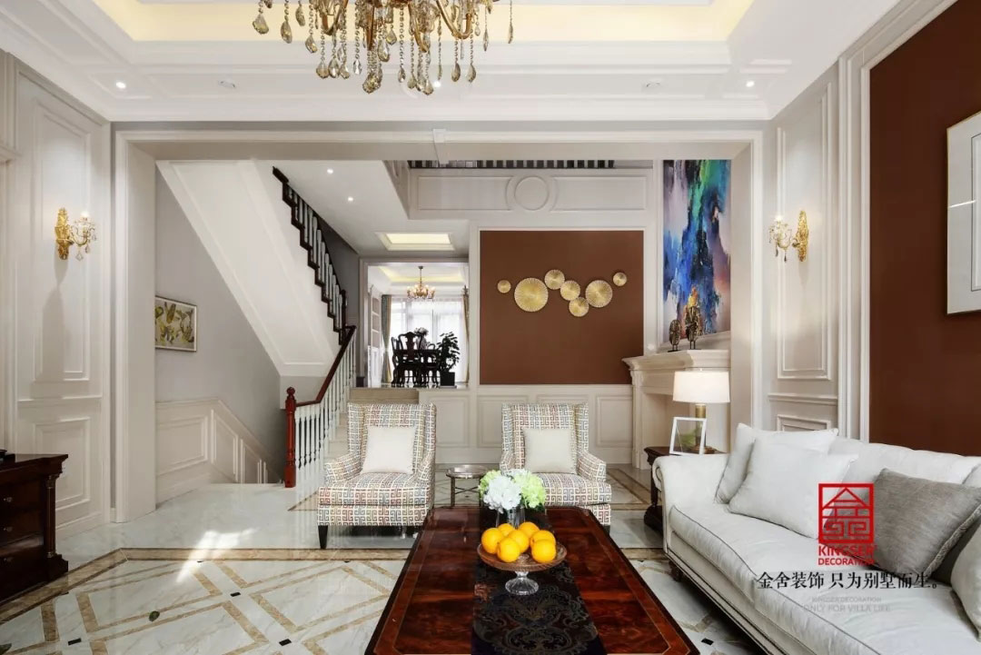 此案例為石家莊別墅裝修-藍郡別墅600平米美式風格裝修實景。色彩斑斕的配色帶著現代生活憧憬的意味融化在現代家居之中,暢想的時尚感縈繞在不斷變化的設計之中,有嘗試,有徜徉;有幻夢,有臆想,每一個對于生活的暢想都將人們帶到另一種生活之中,通透的色彩象征著一種生活態度,生活的真諦不在于奢華的享受,在于生活的舒心和內心的平靜!