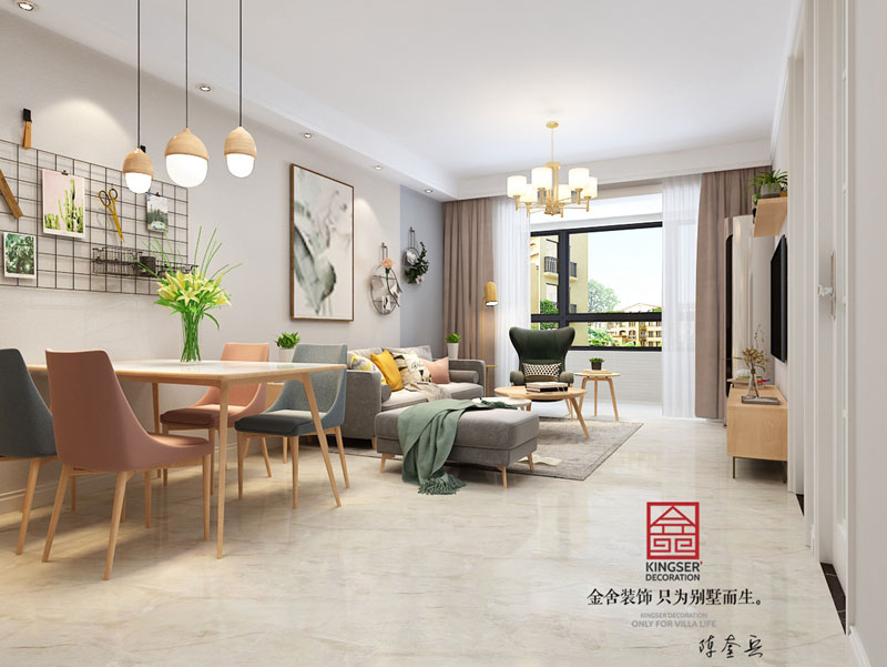 此案例為石家莊金舍裝飾-瀚唐四期94㎡北歐風格裝修效果圖。業(yè)主為新婚夫妻,二人都有各自不同的工作,都在為共同的理想打拼。新的生活居所就是二人共同期盼的理想港灣。