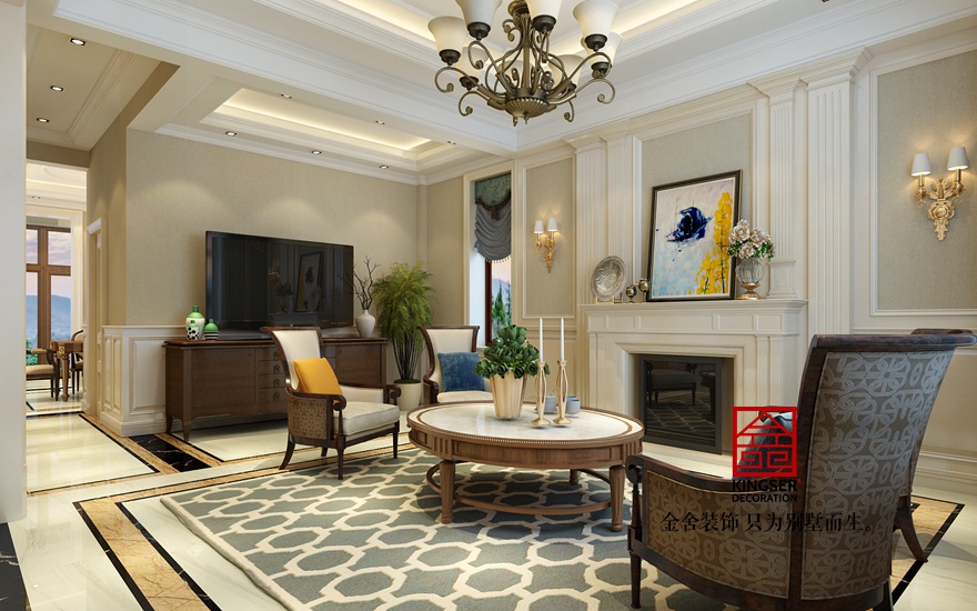 本案為石家莊金舍裝飾-大者300平米美式風(fēng)格裝修效果圖。采用了簡(jiǎn)單明了的淺色調(diào)的清新美式風(fēng)格,整體的色調(diào)采用了淺米黃色的素色壁紙,加之乳白色簡(jiǎn)潔造型,精致的銅鑄吊燈,使得整個(gè)空間錦上添花,質(zhì)樸而不奢華。搭配亮色布藝和簡(jiǎn)潔干練的美式家具,使得整個(gè)空間簡(jiǎn)潔大方,質(zhì)樸典雅,完美的符合了業(yè)主提出的“簡(jiǎn)潔而不簡(jiǎn)單”的設(shè)計(jì)理念。