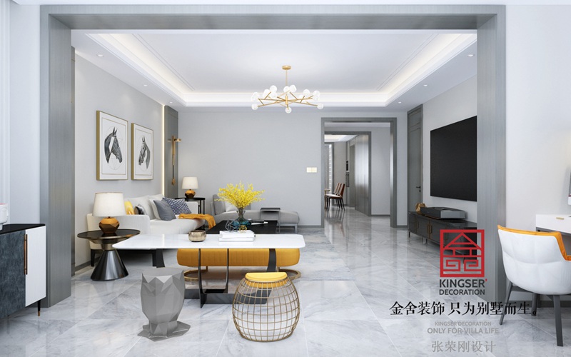 室內空間開敞、內外通透,在空間平面設計中追求不受承重墻限制的自由,沒有過分的裝飾,一切從功能出發,講究造型比例適度、空間結構圖明確美觀,強調外觀的明快、簡潔。體現了現代生活快節奏、簡約和實用,但又富有朝氣的生活氣息。