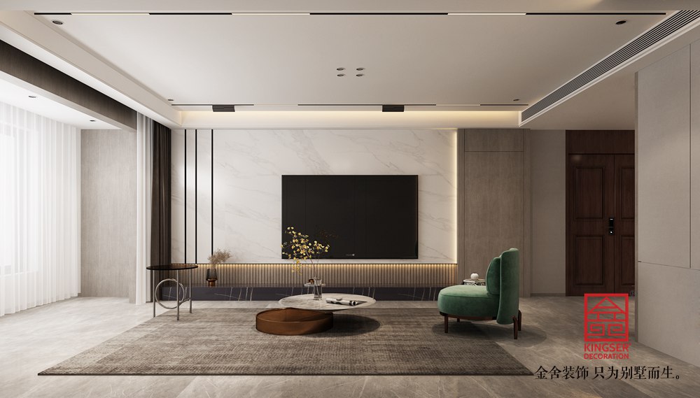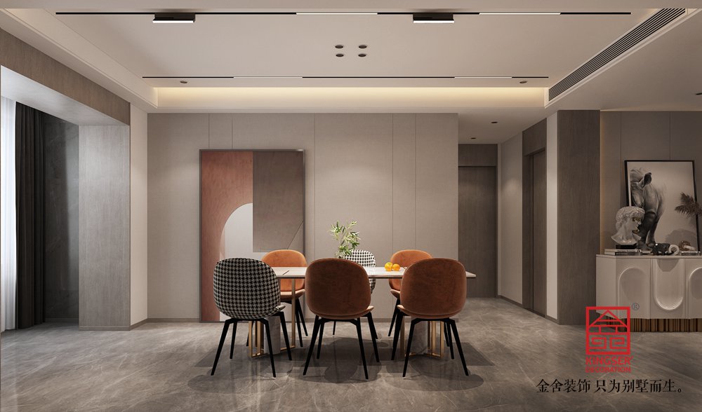 主案設計師:康立翅 設計說明:本案是金舍裝飾-榮盛和府183平米現代簡約風格裝修效果圖。現代簡約風格,打破傳統設計理念。本案的業主是一對待婚的年輕人,在年輕人心中,現代簡約風格是時尚、前衛的家居裝修風格。