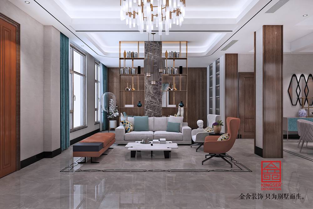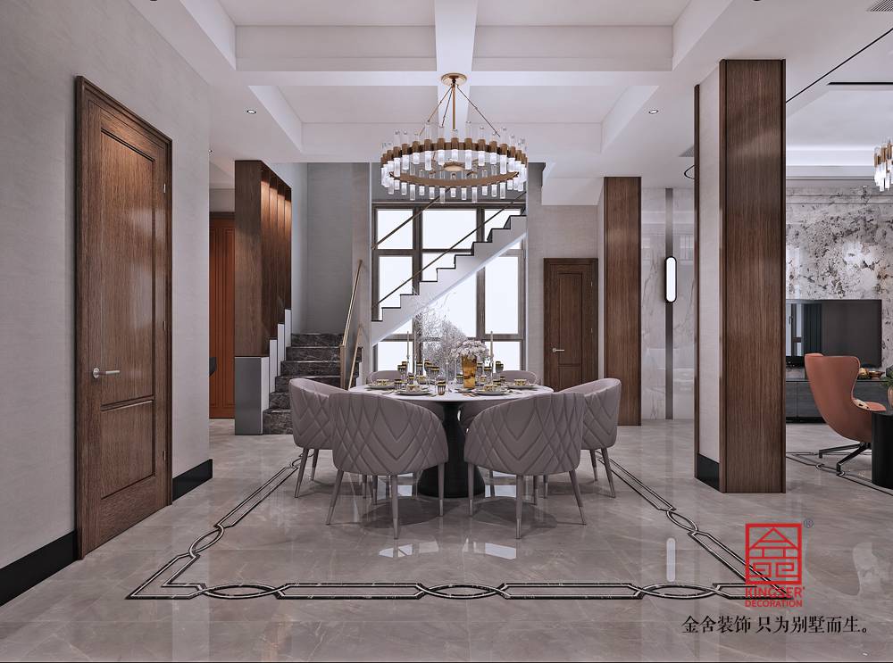 -大者290平米現代簡約風格裝修效果圖。它雖然摒棄了過度華麗的裝飾,也沒有多余的裝飾造型,但與北歐風的“性冷淡 "依然有著明顯的區別—— 在張力十足的線條勾勒、層次豐富的材質運用以及質感奢華的裝飾細節下,為居住者帶來一種奢雅的生活體驗。