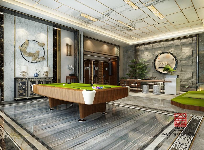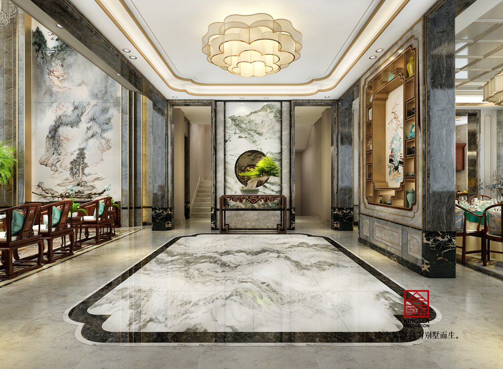 此案例為石家莊金舍裝飾-北苑別墅800平米新中式風格裝修設計圖。新中式風格中的家具大多是古典家具或者是現代家具與古典家具想結合。家具的顏色主要是以深色為主,有深厚沉穩的底蘊。裝飾造型主要采用硬朗簡潔的直線條,空間具有層次感。既使得中式家具古典、質樸的內涵顯現,又符合現代人追求的時尚感、實用性。 金舍裝飾在室內設計中,一貫追求照搬古代設計往往效果不盡如人意,更要注重加入現代元素。現代技術中有很多新型材料,就可以善加利用進去。另外在設計中也可以把主人的個人喜好、品味等也加入進去。既滿足現代人居住的要求,迎合中式家具的設計風格。