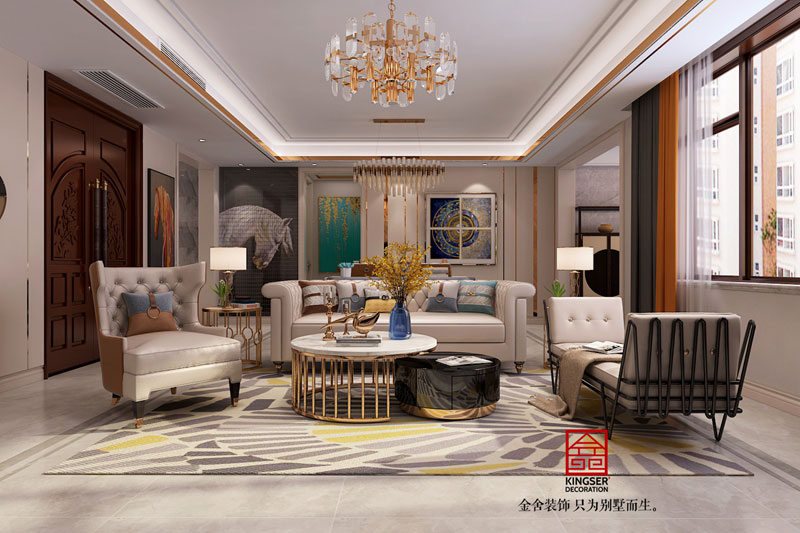 本案為石家莊裝修公司-國賓壹號裝修設計案例,現代輕奢風格,注重功能和空間組織,造型簡潔,崇尚大氣低奢的構成工藝。重在生活品質的體現,利用皮質與金屬色家私營造整個低調奢華空間的氣質。主基調以沉穩的淺色調打底,加上米色,咖色以及橘色的牛皮,細節處理上使用黃銅色的金屬,配上大理石的質感,營造現代的英倫雅痞紳士氛圍。